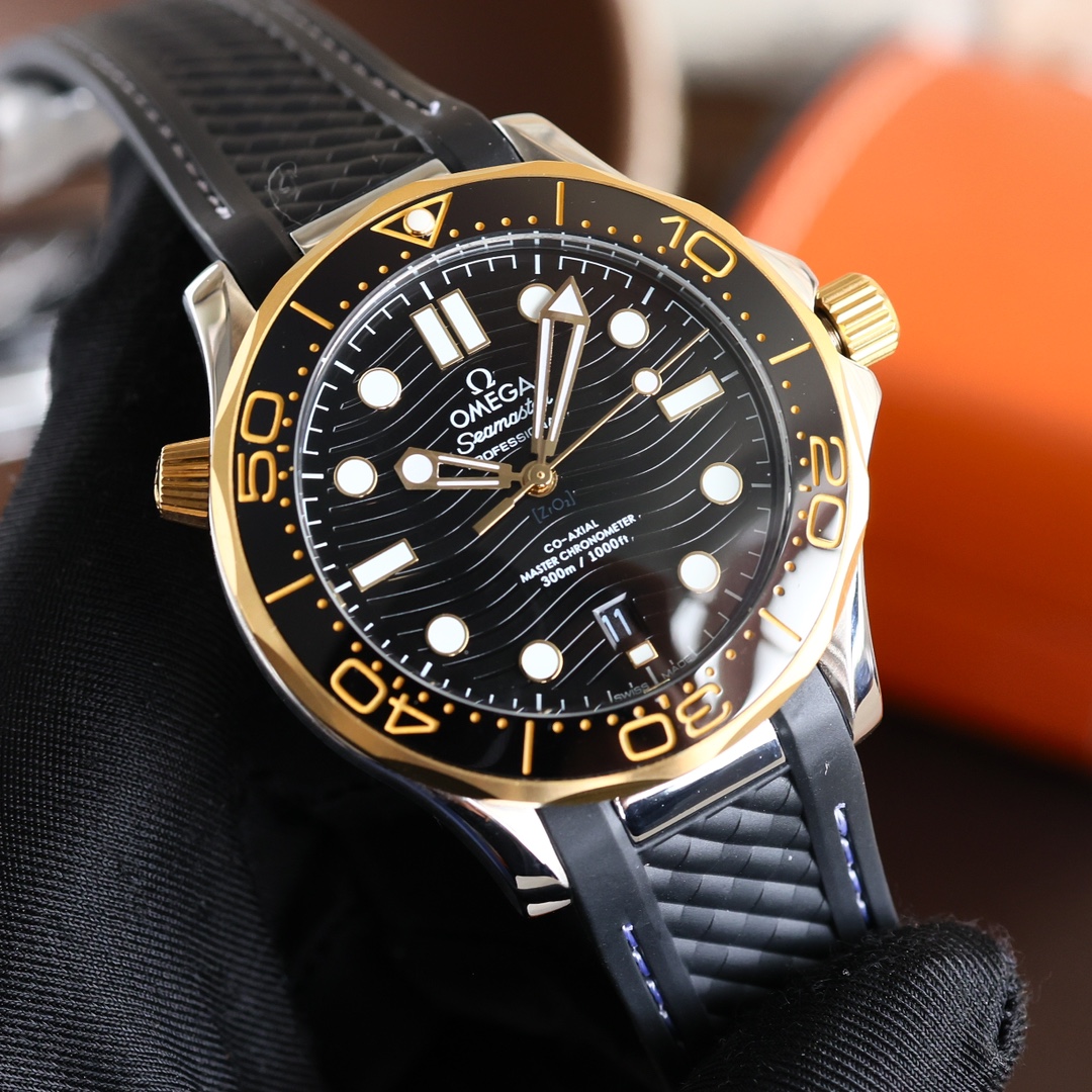 Watch: White shell 400, gold+20. ω Omega omega seamaster new seahorse series new 300m coaxial Diving watch with a diameter of 42mm 42mm. 316l precision steel original casing (large factory casing), original text three-dimensional, super strong luminous, original watch buckle equipped with 8800 perspective fully automatic mechanical movement.