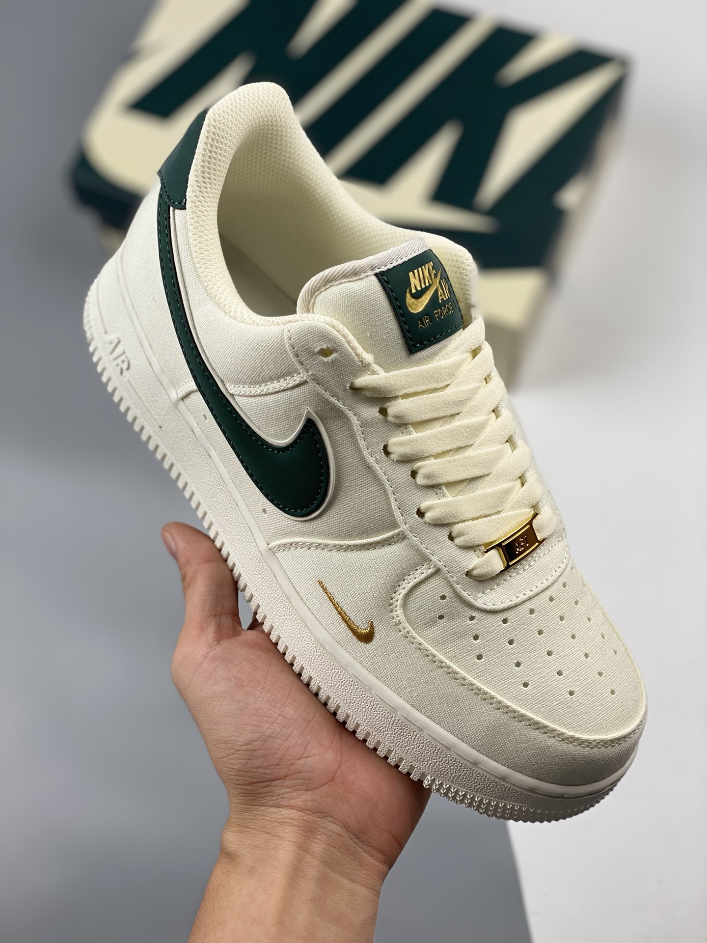 Beige cloth surface Air Force One low top casual board shoes