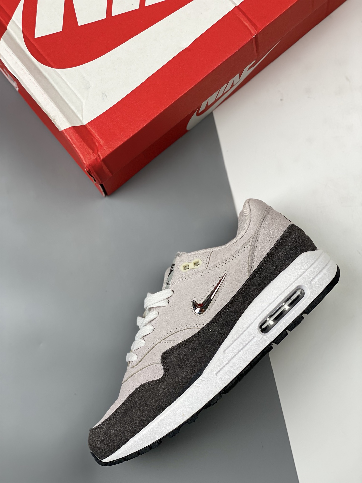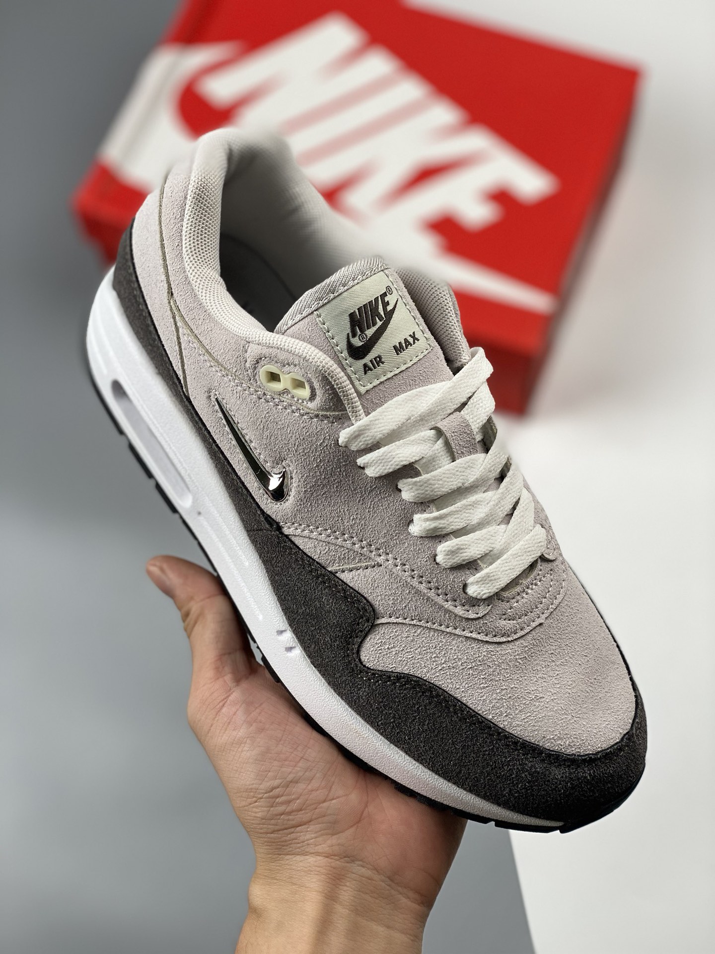 Nike air max 1 jw retro gray silver small hook retro casual running shoes official synchronized launch true label original box original bottom original surface correct version development precise details market highest version product number: 918354 008size: 36 36.5 37.5 38 38.5 39 40 40.5 41 42 42.5 43 44 44.5 45 46 47.5